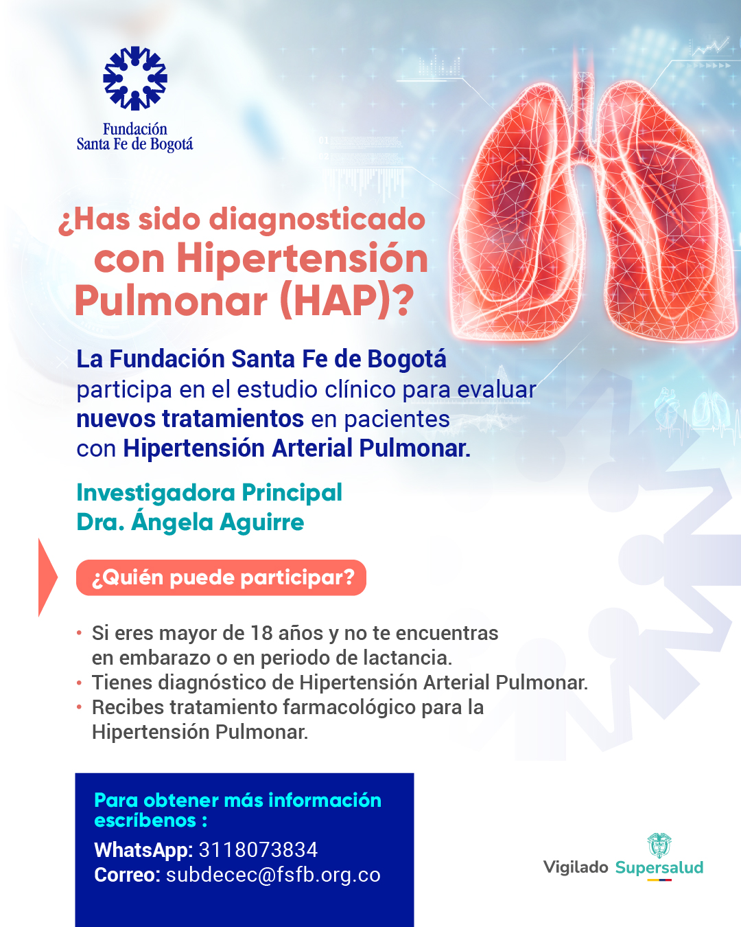 Investigación para pacientes con Hipertensión Arterial Pulmonar (HAP), en la que se evaluará un nuevo dispositivo auto inyector para la administración del medicamento Sotatercept.